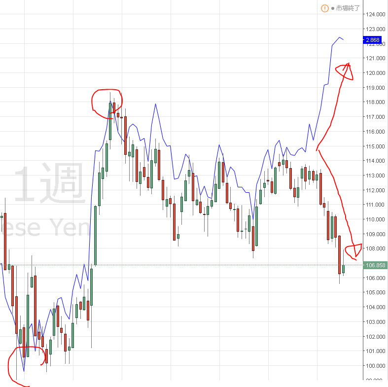 更には、USD/JPYの戻りは鈍い。週足レベルで見ても下値余地あり。